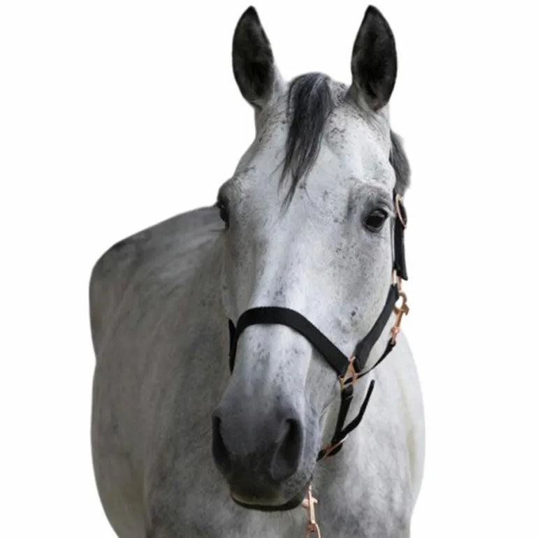 - En nylon double épaisseur avec muserolle et têtière réglables et ouverture rapide de la sous gorge par mousqueton.