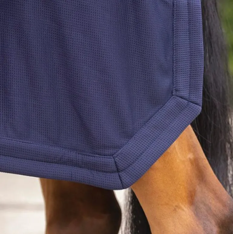 - Confectionnée dans un tissu léger, technique et d’un grand confort. Le tissu nid d’abeille qui la compose est particulièrement respirant, idéal pour facilité la récupération du cheval après le travail.