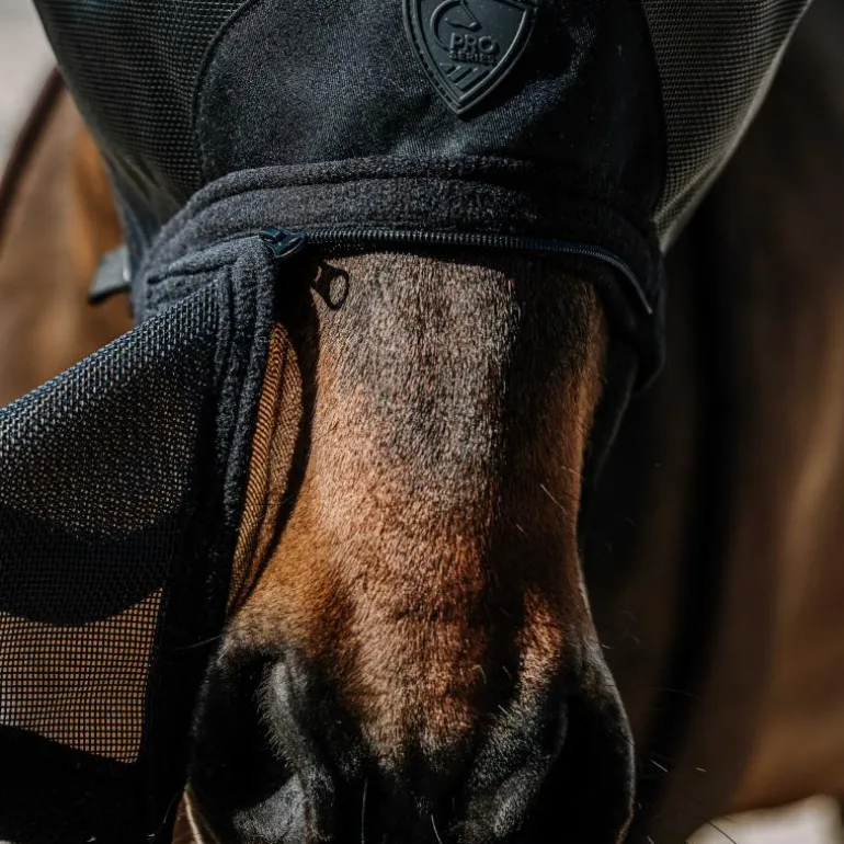 • Structure en arceau maintenant le masque éloigné de la tête du cheval pour éviter les frottements sur les yeux