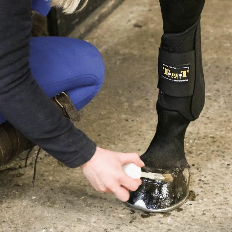 - La coque rigide thermoformée assure un parfait ajustage de la protection sur le membre du cheval