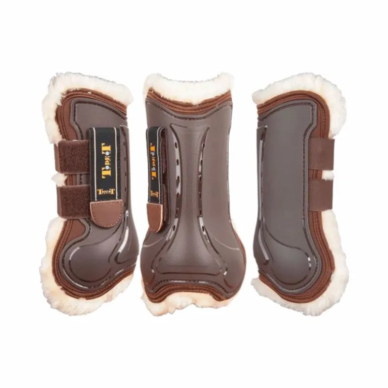 - Intérieur en fourrure synthétique pour un confort optimum. Découpe du haut de la coque sur les protégés tendons pour faciliter la flexion du genou. Fermeture par velcro avec lanières élastiques