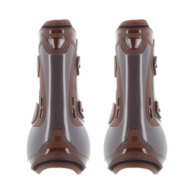 - La forme anatomique garantit un confort maximum et un positionnement parfait sur l’antérieur du cheval. Le matériau à double densité de la coque est associé à la mousse EVA, un matériau synthétique anti-choc particulièrement souple et élastique, et offre ainsi une protection véritablement absolue et un confort unique.