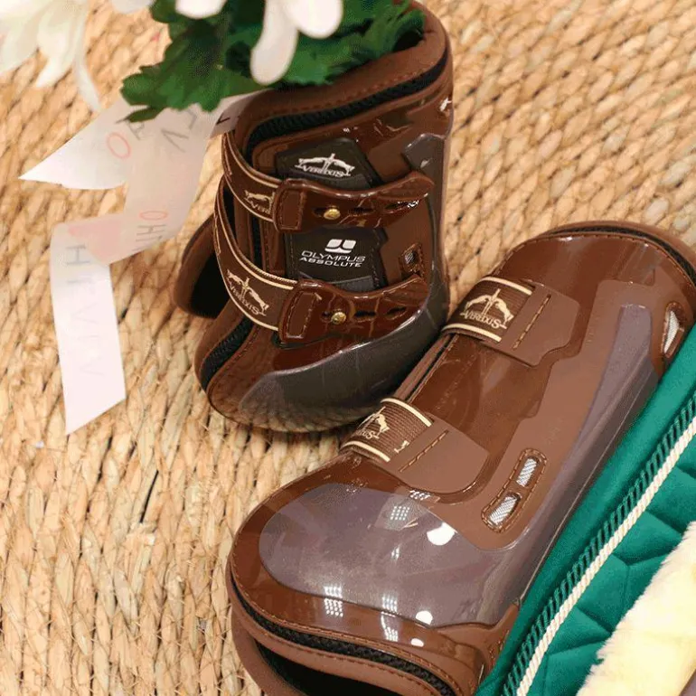 - Guêtre antérieure parfaite pour de multiples disciplines équestres : plus larges, plus résistante, plus sûre. Olympus Absolute Front offre une plus grande surface de protection qui couvre toute la zone du tendon du fléchisseur jusqu’au boulet, dans une forme innovante en Y inversé.